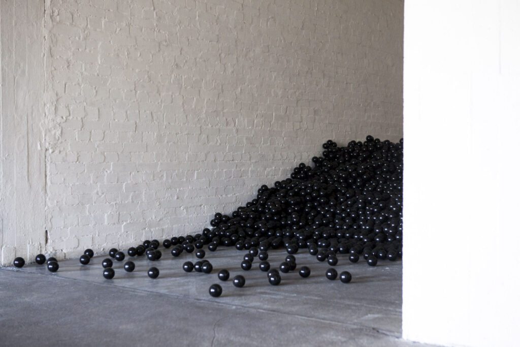 Helsingissä, galleria Forum Boxissa, oli helmikuussa esillä mustista pallomeren palloista rakennettu installaatio. Siinä pienet muoviset pyörylät velloivat mekaanisen alustan päällä, joka nousi ja laski, kahisi ja nitisi liikkuessaan. Kuvataiteilija Erika Erre (s. 1979) on nimennyt tumman pallomeren Haudaksi (2016). Teoksessa meri on öljynmustaa muovia ja leikkipaikka upottavaa kuolemaa. Lapsuuden pallomeret koetaan meriä kyntävillä risteilyaluksilla, jotka kulkevat Suomenlahden ylitse ja kuljettavat lomalaisia kaupungista toiseen. Värikkäässä pallomeressä leikkiessä saattaa ikkunasta nähdä vilauksen oikeaa merta. Haudassa kaikki on kuitenkin mustaa.