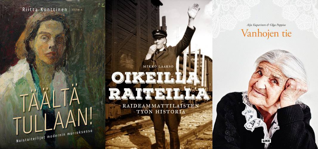 Joitakin piristäviä poikkeuksia toki löytyy. Ilkka Taipale tarkastelee Sata innovaatiota Suomesta -teoksessaan (Into) eri aikoina syntyneitä kansallisia innovaatioitamme, joiden ansiosta voimme sinänsä aiheellisesti paukutella henkseleitämme maailman turuilla ja toreilla, kun ajatellaan esimerkiksi äitiyspakkauksen, maksuttoman kouluaterian ja jokamiehenoikeuden tuottamaa merkitystä. Aija Kuparisen ja Olga Poppiuksen Vanhojen tie: Suomen romanit, viimeiset kiertolaiset (Like) nostaa päivänvaloon 14 suomalaisen romanivanhuksen vaiheet, joissa kuvautuu menneiden vuosikymmenien kiertolaiselämä ja valtaväestölle vieraaksi jäänyt romanikulttuuri. Riitta Konttinen marssittaa esiin joukon 1900-luvun alun naistaiteilijoita, joiden kohtalona oli jäädä vaille suurempaa huomiota, Täältä tullaan -kirjassaan (Siltala). Yhtenä pikanttina esimerkkinä voitaneen mainita vielä Oikeilla raiteilla (Siltala), jossa Mikko Laakso kertoo raideammattilaisten työn historiasta Suomessa.