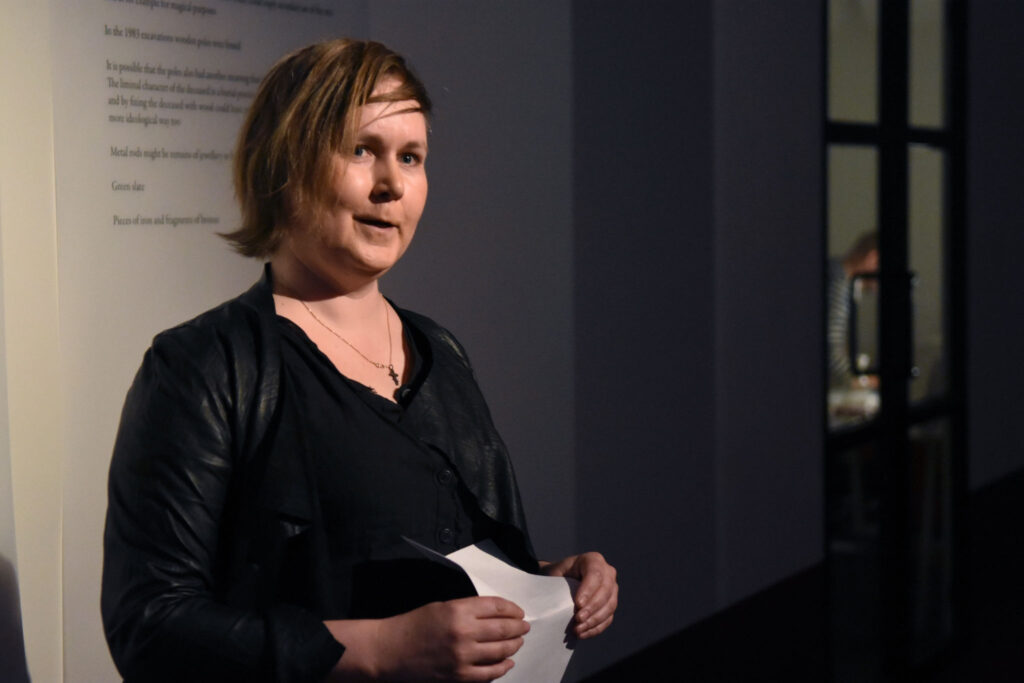 Toimitusjohtaja Sabina Westerholm toivotti vieraat tervetulleiksi Galleria Sinneen. Kuva: Jouni Viitala