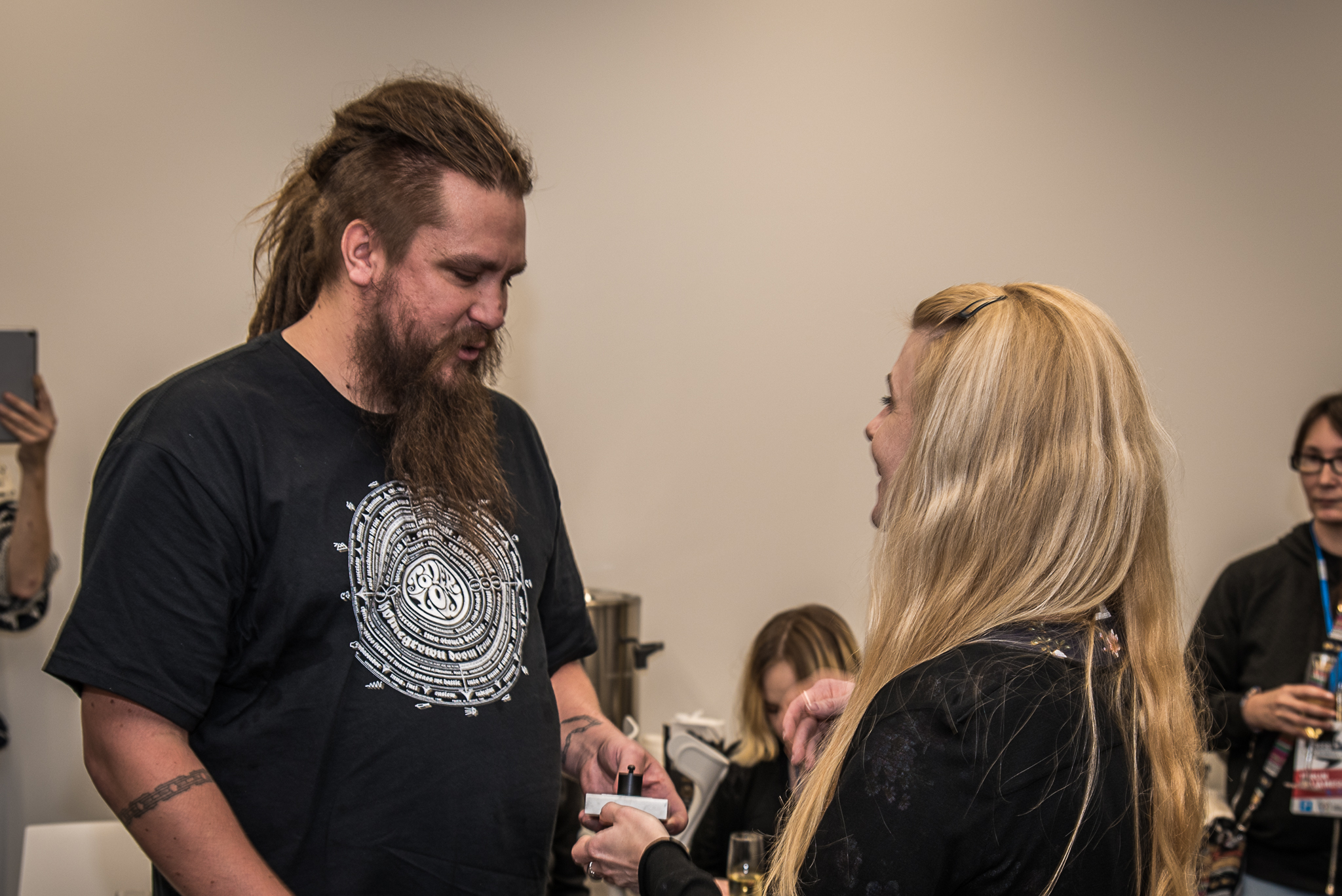 Kari J. Kettula ja punnuksilla palkittu elokuvaohjaaja Elli Vuorinen. Kuva: Harri Sundell