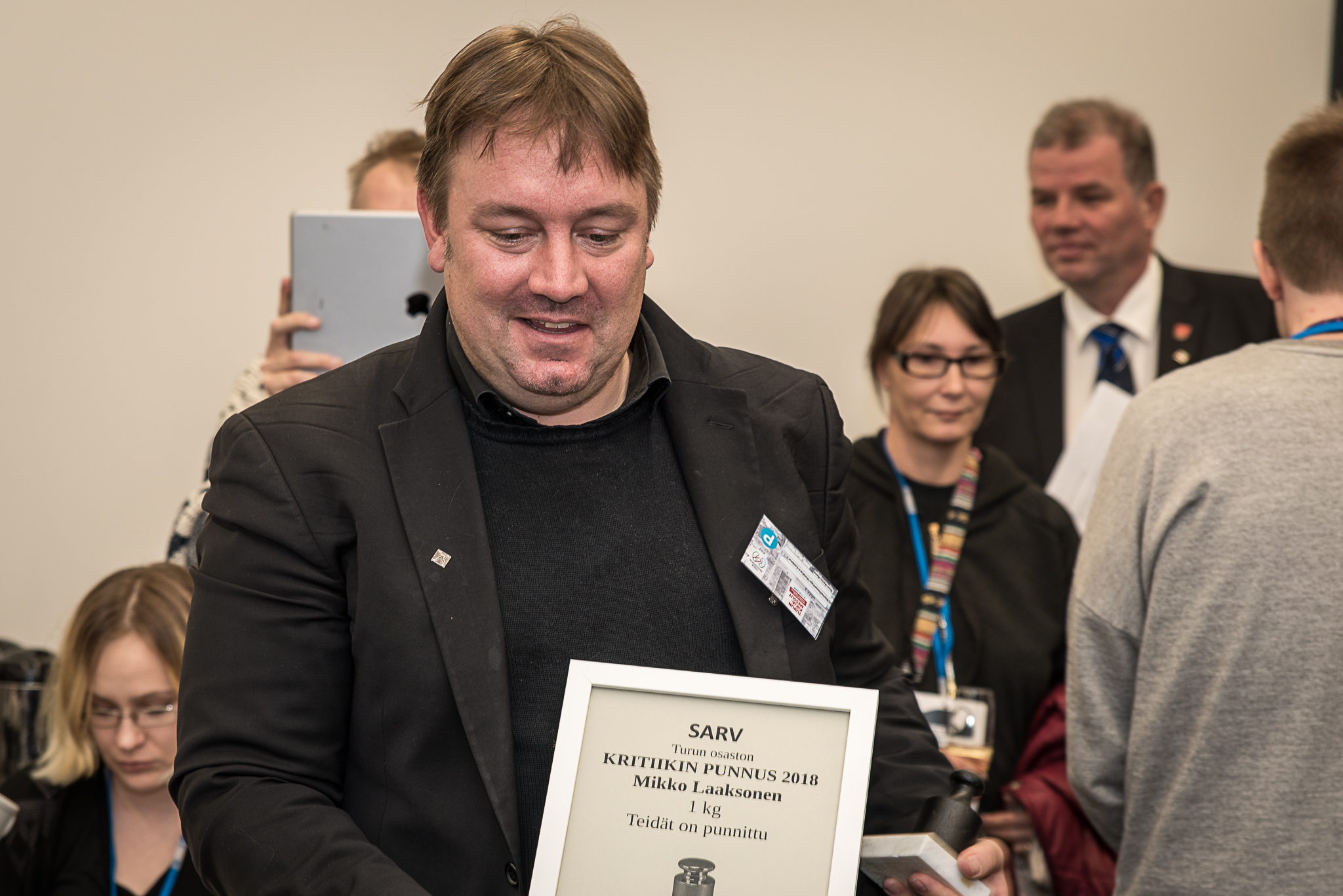 Kritiikin punnukset saanut tietokirjailija, kriitikko Mikko Laaksonen. Kuva: Harri Sundell