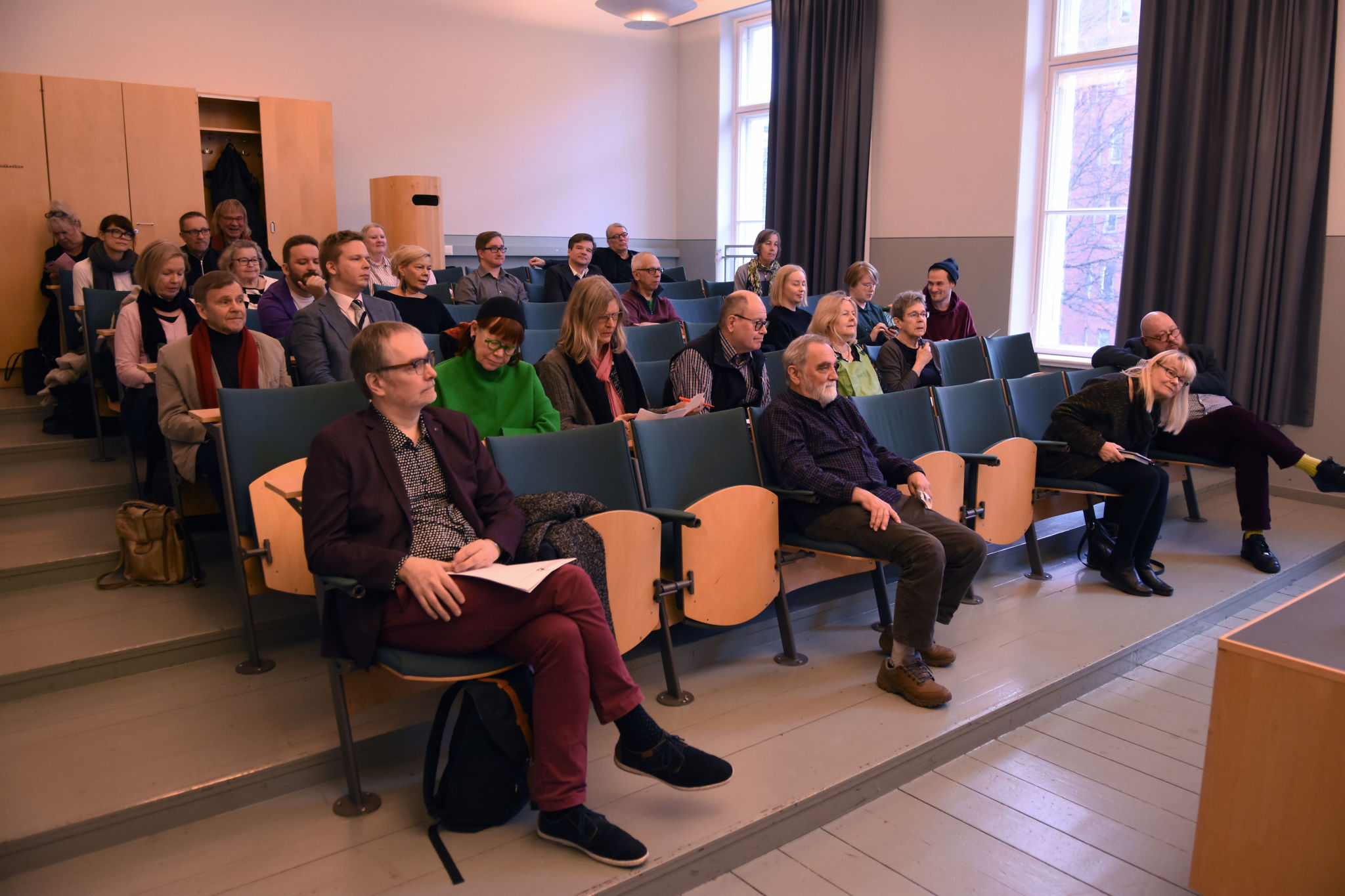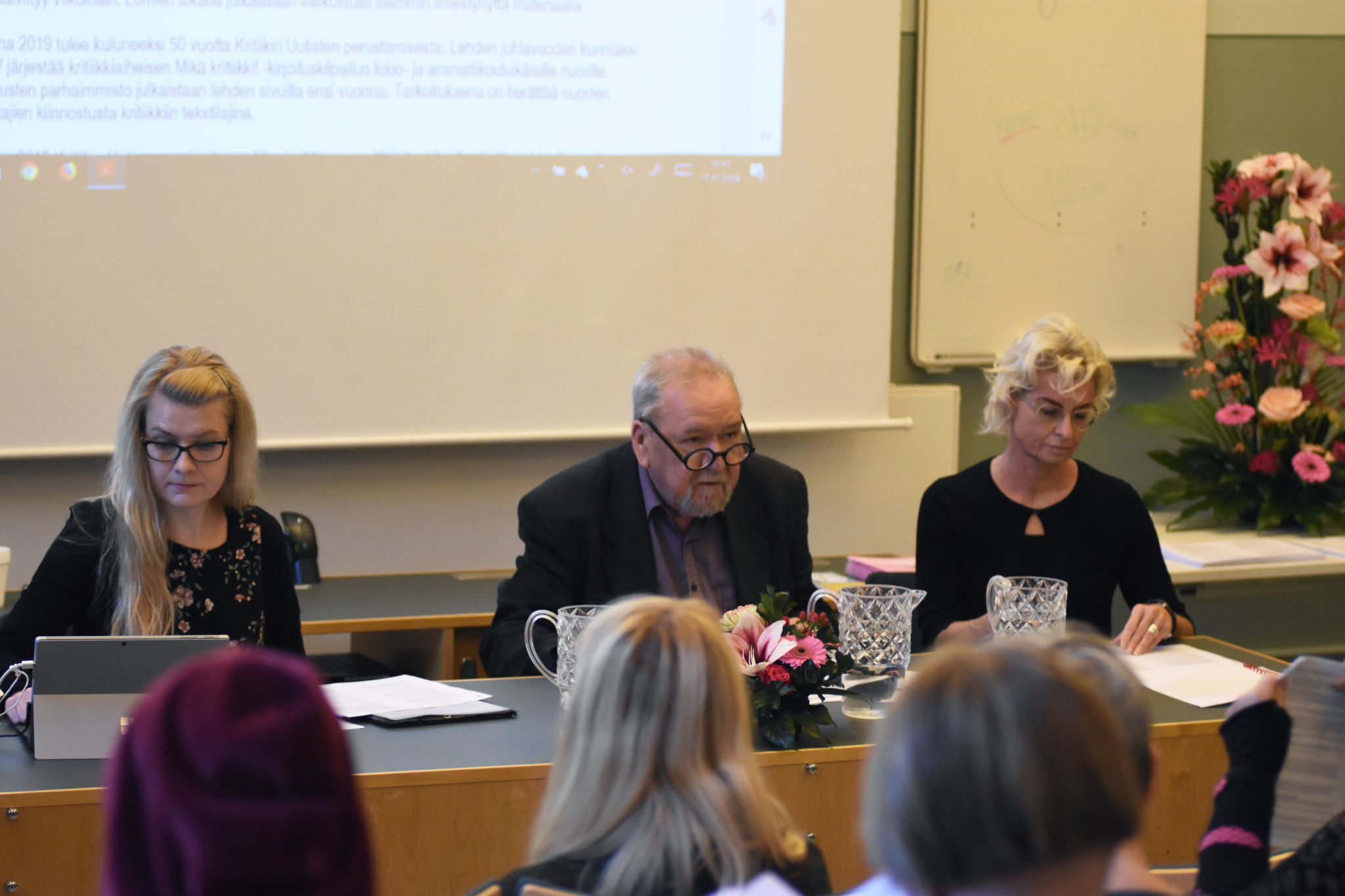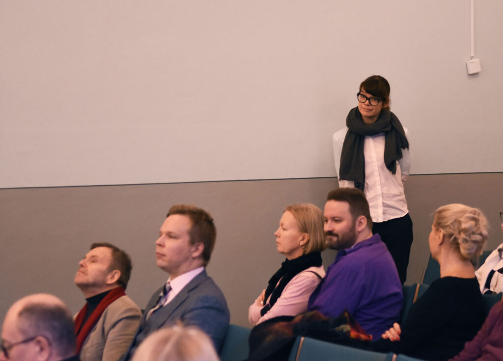 Toimintasuunnitelman 2019 käsittelyä. SARVin toiminnanjohtaja Riikka Laczak, syyskokouksen puheenjohtaja Seppo Heiskanen ja SARVin varapuheenjohtaja Maaria Salo. Kuva: Jouni ViitalaKokouksen puheenjohtajana toimi Seppo Heiskanen. Kuva: Jouni ViitalaSARVin varapuheenjohtaja Maaria Salo. Kuva: Jouni ViitalaSyyskokouksen osallistujia. Kuva: Jouni ViitalaSara Nybergin esittelyvideo, Riikka Laczak, Seppo Heiskanen ja Maaria Salo. Kuva: Jouni ViitalaKokousväkeä. Eturivissä Hannu Björkbacka, Hannu-Pekka Wettenhovi ja Marita Nyrhinen. Kuva: Jouni ViitalaKuvataidekriitikko Asta Kihlman esittäytyi. Kuva: Jouni ViitalaMatti Tuomelan puheenvuoro. Taustalla J.T. Laakso ja Ansa Aarnio. Kuva: Jouni ViitalaÄäntenlaskijoina Hannele Salminen ja Ulla Lehtinen. Kuva: Jouni ViitalaHallitukseen valitut Teemu Korpijärvi, Asta Kihlman, Sini Mononen, Sanna Lipponen ja Matti Tuomela. Kuvasta puuttuu Sara Nyberg. Kuva: Jouni ViitalaAnnantalon auditorio kokouksen päätyttyä. Kuva: Jouni ViitalaAnnantalon aulassa ennen lounasta. Kuva: Jouni ViitalaAnsa Aarnio, Maaria Salo, Ville Hytönen, Ritva Kolehmainen ja Ville Hänninen. Kuva: Jouni ViitalaAnnantalon lounaalla, etualalla Veli-Matti Huhta. Kuva: Jouni ViitalaLounastarjoiluja. Kuva: Jouni Viitala