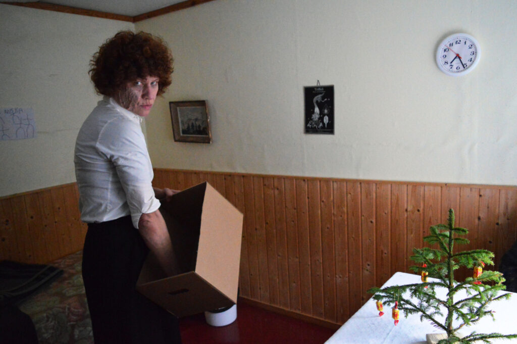 Jenni Kivelän Rosemaryn huone Helsingin Lammassaaressa syksyllä 2018. Kuvassa Ninu Lindfors. Kuva: Mia Kivinen