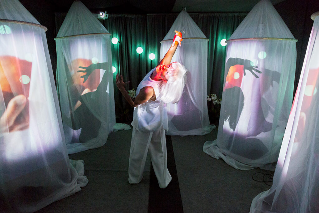 ”Immersiivinen esitys on terminä hybridi. Se voi olla pientä tai suurta, hyvin teknistä tai yksinkertaista, tanssia, sirkusta, teatteria, kuvataidetta, mitä vain yhdistelevää. Jokainen taiteilija käyttää immersiota omista lähtökohdistaan”, pohtii Lija Fischer ja toteaa sen juuri tekevän upottavuudesta kiinnostavaa.