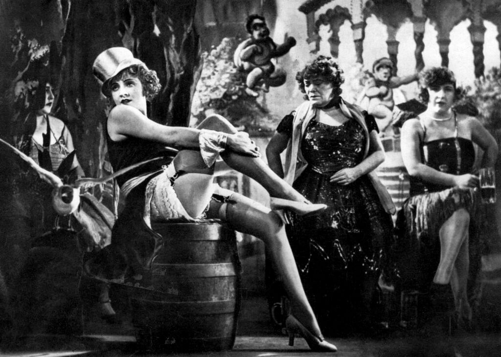 Marlene Dietrich elokuvassa Sininen enkeli (ohj. Joseph von Sternberg, 1930).