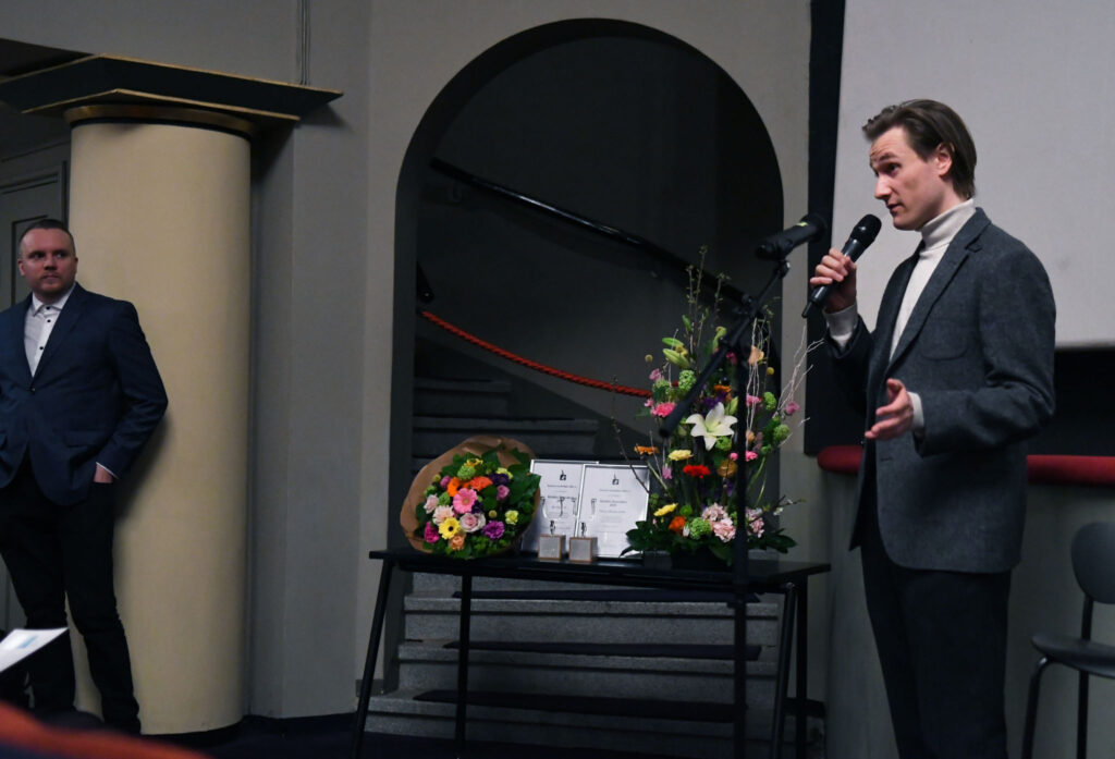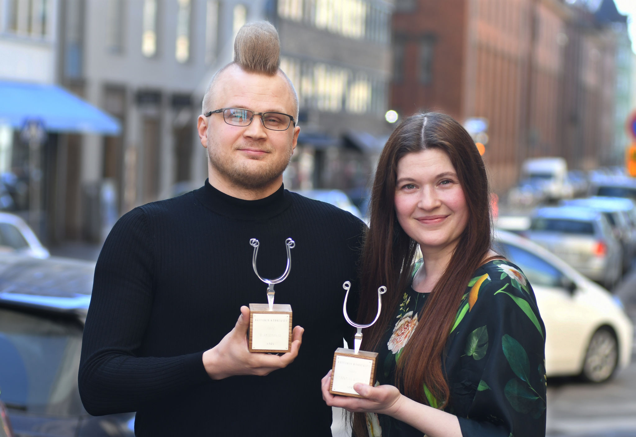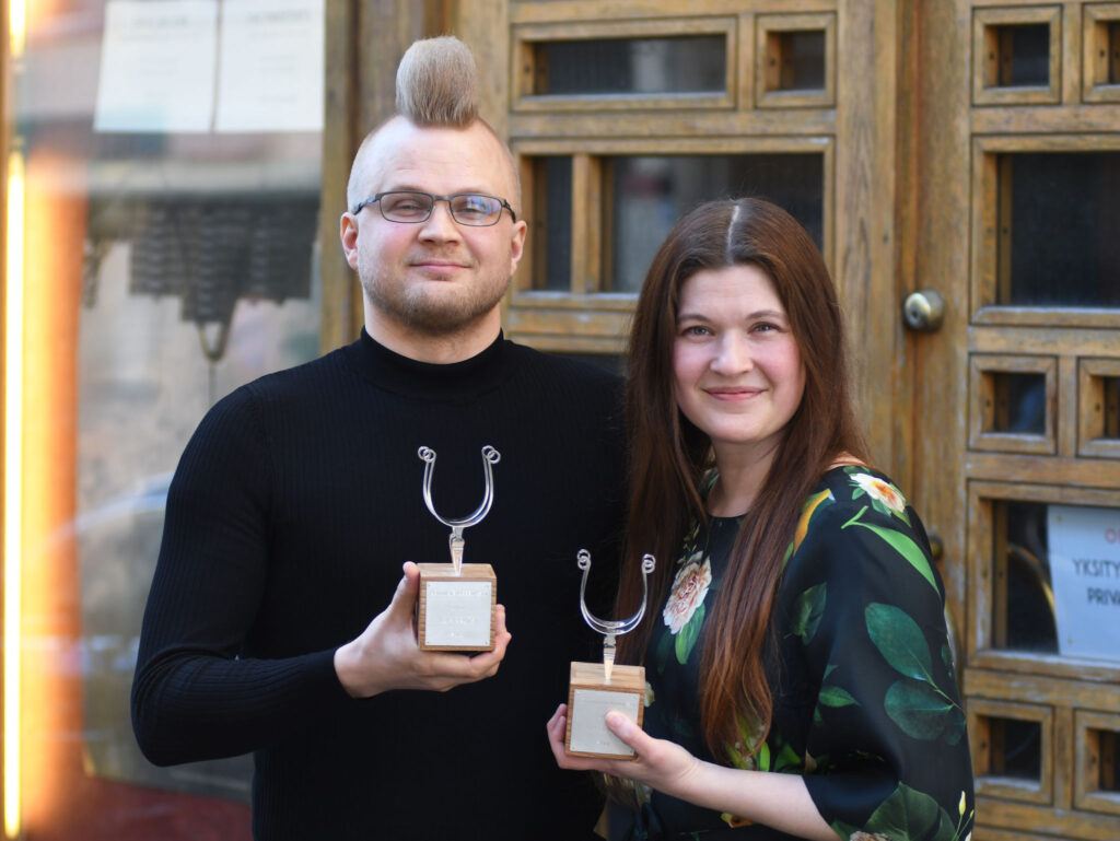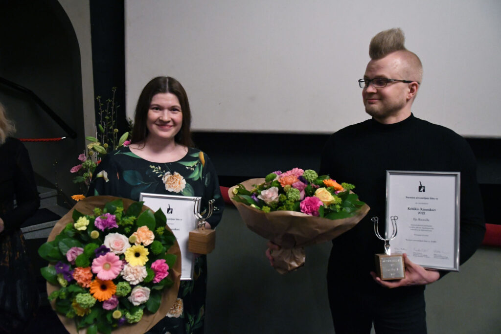 Kritiikin Kannuksilla palkitut käsikirjoittaja Ilja Rautsi ja ohjaaja Hanna Betgholm. Kuva: Jouni Viitala
