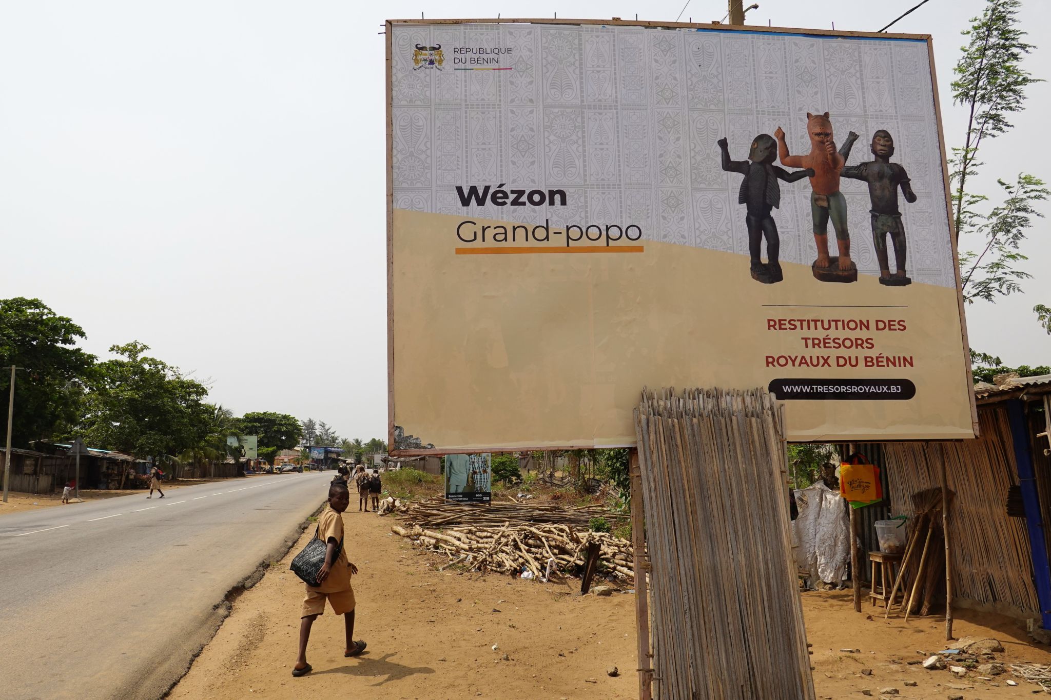 Dahomeyn kokoelmia mainostettiin loppuvuodesta 2021 Grand-Popon kylässä Beninissä. Kuva: Heikki Kastemaa