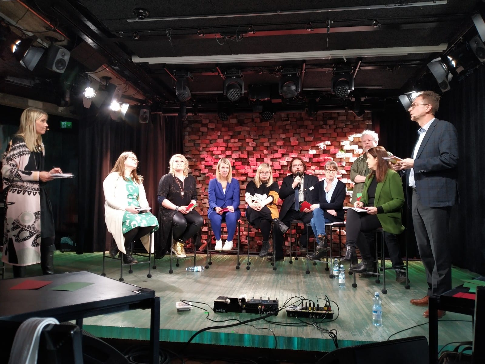 Taiteen edistämiskeskuksen erityisasiantuntija Henri Terhon ja toimittaja Paula Vilénin tentattavina oli ehdokkaita kahdeksasta puolueesta.