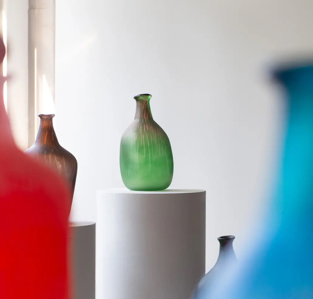 Muotoilija ja taiteilija Markku Piri aloitti taiteellisen uransa monipuolisena tekstiilisuunnittelijana, lavastajana ja puvustajana. Hän toimi muun muassa Marimekossa, viimeisenä Armi Ratian palkkaamana suunnittelijana. Lasitaiteen pariin hän uppoutui vuosituhannen vaihteessa. Gumbostrandissa on esillä töitä vuosilta 2023 ja 2017.