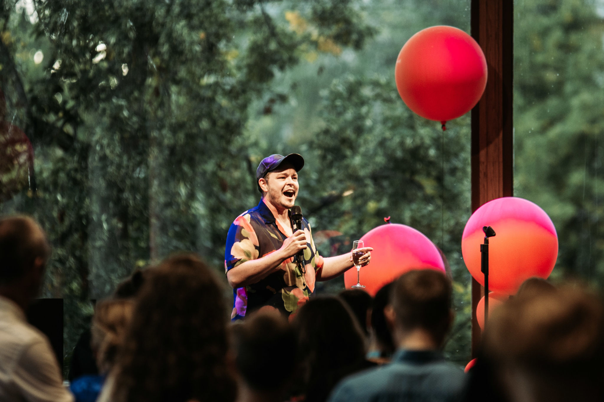 In his stand-up set on the opening night of the Biennale, Jamie MacDonald said: “I once performed in Singapore and people there told me ‘you’re very brave’, I told them ‘Don’t tell me, please, just now, how brave I am. I don’t want to know in how much risk I am right now’”. Today, here at this festival, we are celebrating. Jamie is a “Canadian-Finnish transgender nuisance” […] who has made a name for himself in the “red-green bubble”, as he says about himself in a biography. He is an opening joker, a “host”. So this is us, the bubble. I locate myself and the festival audience, slightly pinched over a glass of bubbles. Ohh, the politics of recent years have become unbearable for us. So much is getting worse, there’s so little you can do, so much that needs to be done. Sometimes, when it doesn’t feel desperate, it even feels like a cruel joke, so maybe someone needs to work professionally to make it even lighter and much heavier at the same time; so that we, the bubble, can catch up with the sense of reality, to return to the possibility of articulating what is happening. Jamie does this well, his joke spins and seeps into further events, like narrative threads with the thrust of polemical power.