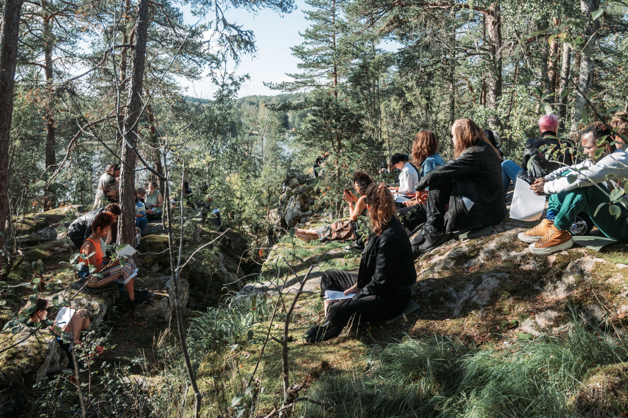 “We” are sitting in the interdisciplinary pit-crossing, where the ancient and contemporary ruralities emerge thanks to the international songs of multilingual articulations. The Cottage Country, with its jetties, woods, and no fields at all, tolerates us temporarily. The landscape of leisure and the work of art asks us: Stop, rest. And this landscape, at times as empty as that of Jamie’s opening joke, “a wet dream of a fascist art form, a landscape without people”, now contaminated by “us”, is framed not by the golden frame but by the weeping song. We came only for this cry, for this prayer of dying, of cutting the ground, of becoming soil, of becoming earth. We only visit, carefully gathered around the pit. There are warnings from the organisers: DO NOT COME TOO CLOSE TO THE PIT, lest the performance become too literal. Don’t make it about you, don’t fall into the pit and die, it’s about the Earth, and even if she asks you to become Earth, become me, don’t do it just yet. The cynic in my head begs: not together with the damned motorboat owners. No need, we are just imagining a possibility while postponing the actual event and all the decisions involved until later.